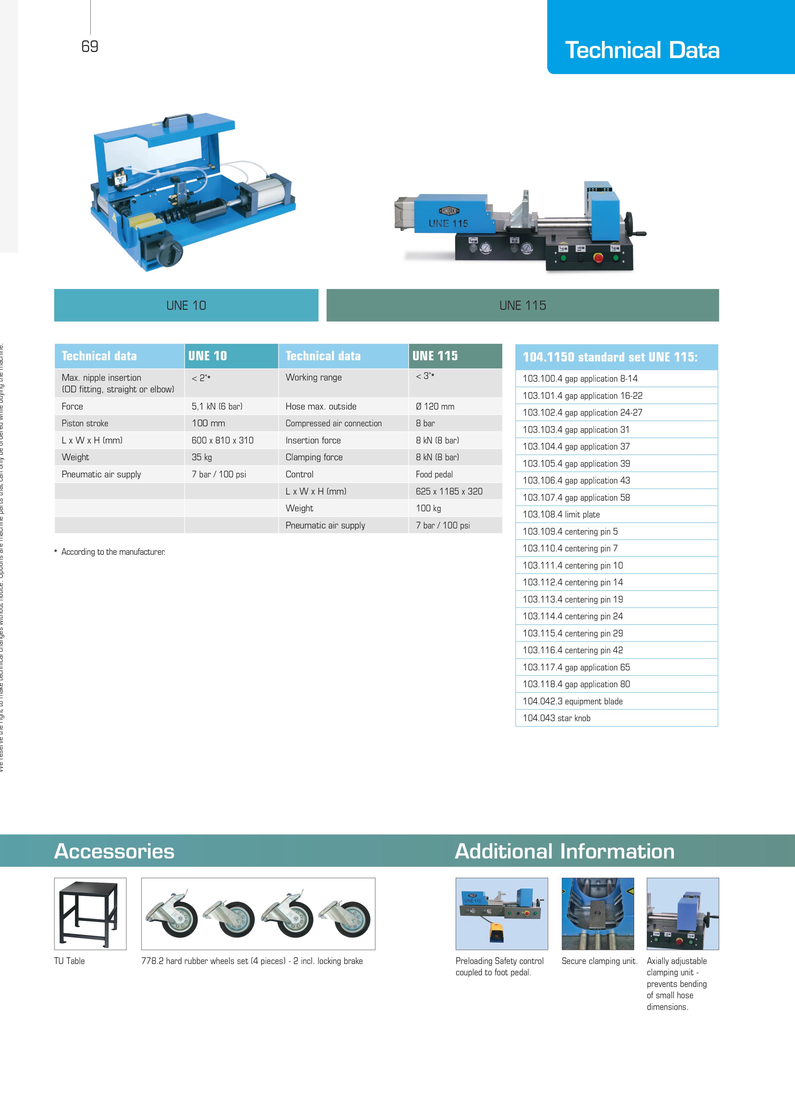 محصولات یونیفلکس در این زمینه چند ویژگی شاخص دارند. اول اینکه بعد از برش به دلیل کیفیت بالا، سطح شیلنگ را پوسته پوسته نمیکنند. دوم اینکه سطح داخلی و یا خارجی شیلنگ بعد از برش زبر نمیشود که این موضوع باعث دوام و عمر بیشتر شیلنگ میشود. این دستگاه قادر به مونتاژ سری هایی با قطر حداکثر ۲ اینچ است و فشار پرس آن ۴.۷ کیلونیوتن میباشد. این دستگاه دارای ابعاد ۶۰۰×۸۱۰×۳۱۰ بوده و دارای وزن ۳۵ کیلوگرم است. یونیفلکس همواره سعی بر این داشته تا محصولات تولیدی این شرکت علاوه بر کارایی و کیفیت بالا ، تا جای ممکن کمجا باشد. استفاده از این ماشین راحت است و سرعت آن هم در انجام این کار بالاست.