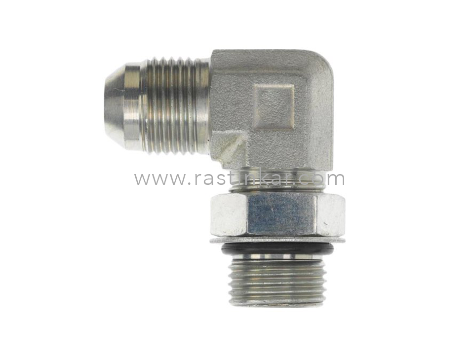 زانویی نری JIC به SAE ( Adjustable 90° Elbow m JIC X m SAE) یک تبدیل سری پرچی (JIC) به سری SAE میباشد که به صورت زانویی با زاویه ۹۰ درجه طراحی شده. هر دو سری این آداپتور یا تبدیل به صورت نری میباشد، بدین معنا که به شکل رودنده طراحی شده و داخل یک اتصال ماده پیچ میشود. در ادامه توضیح مختصری درباره اتصالات JIC و SAE آورده شده است.