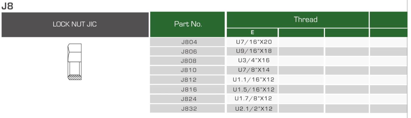 مهره کنترل پرچی (JIC) یک قطعه شش وجهی رزوه شده است. این مهره در تجهیزات مختلف با پیچ و مهره هایی با جنس شبیه به خود میشود. در سایزهایی بین ۱/۸″ تا ۲″ موجود است. به طور کلی یکی از رایج ترین راه های اتصال در اتصالات مکانیکی استفاده از پیچ و مهره است. میتوان چند بار از آن استفاده کرد .انتخاب این مهره ها بسیار اهمیت دارد و معمولا از نظر مقاومتی هم رده پیچ یا حتی یک رده بالاتر انتخاب میشوند تا اتصال دچار شکست نشود. این مهره در دو جنس فولاد ضدزنگ ( Stainless Steel ) ساخته میشود. این قطعه در برابر لرزش مقاومت مطلوبی دارد علاوه بر آن ضد سایش نیز است.