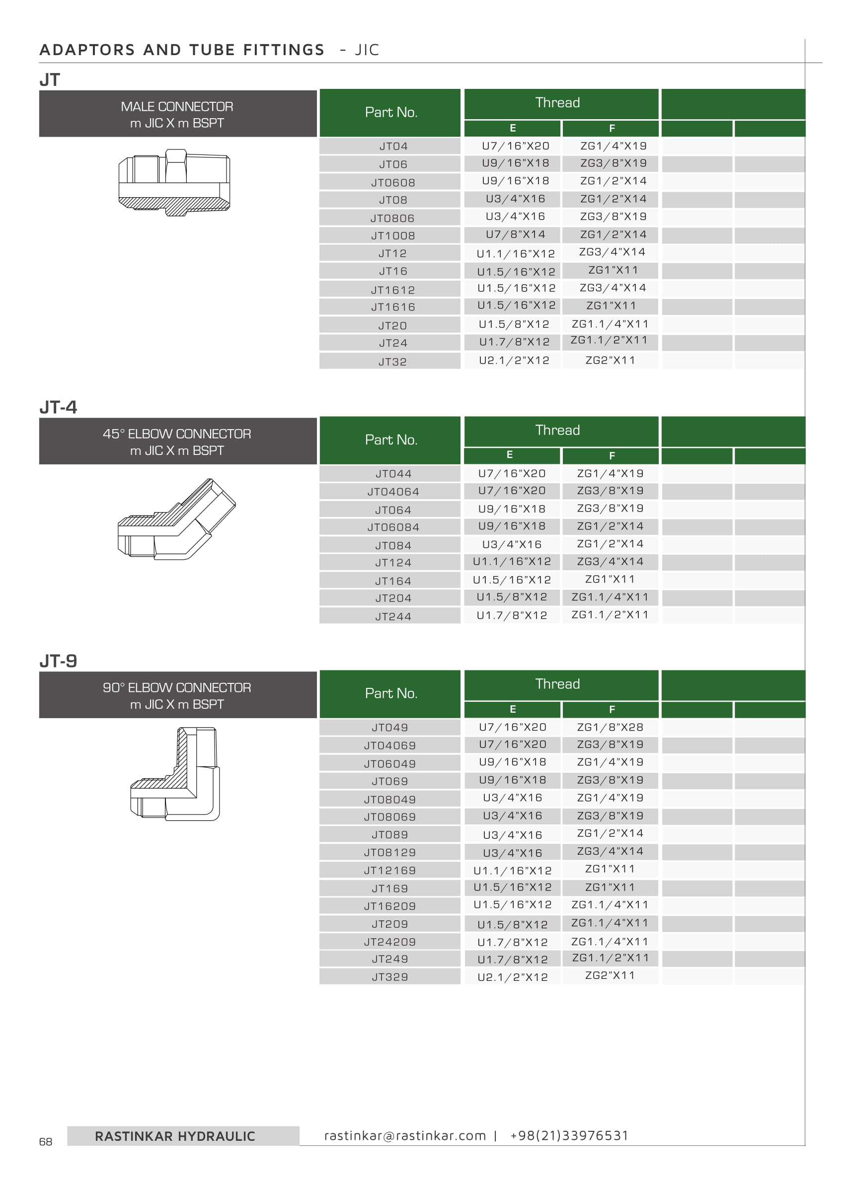 شرکت راستین کار بزرگترین وارد کننده و ارائه خدمات پس از فروش انواع سرشیلنگی و اتصالات هیدرولیک از جمله زانویی نری JIC به BSPT در خاورمیانه است. برای سفارش و دریافت مشاوره محصولات به ما ایمیل (rastinkar@rastinkar.com) بزنید. یا با دفتر تهران با شماره هاي ۰۲۱۳۳۹۹۱۸۵۲ ،۰۲۱۳۳۹۷۶۵۳۰، ۰۲۱۳۳۹۷۶۵۳۱ و تلگرام ۰۹۱۹۸۱۶۱۶۹۲ تماس حاصل فرمایید.