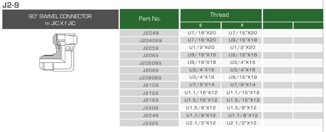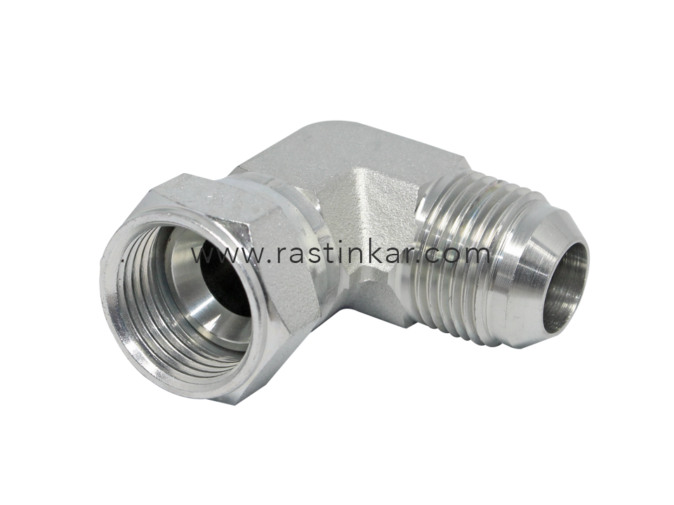 زانویی پرچی گردان ( ۹۰° Swivel Connector m JIC X f JIC) یک زانویی پرچی ( JIC ) میباشد که به صورت خم ۹۰ درجه طراحی شده است و قابلیت چرخیدن دارد که به همین دلیل به آن گردان میگویند. یکی از سری های این واسط به صورت نری میباشد. بدین معنا که به شکل رودنده طراحی شده و داخل یک اتصال ماده پیچ میشود. سری دیگر برعکس است، یعنی به شکل مادگی یا داخل دنده طراحی شده و به یک سری پرچی نری وصل میشود. لازم به ذکر است که هر دو این سری ها به بر طبق استاندارد JIC طراحی و ساخته شده اند.