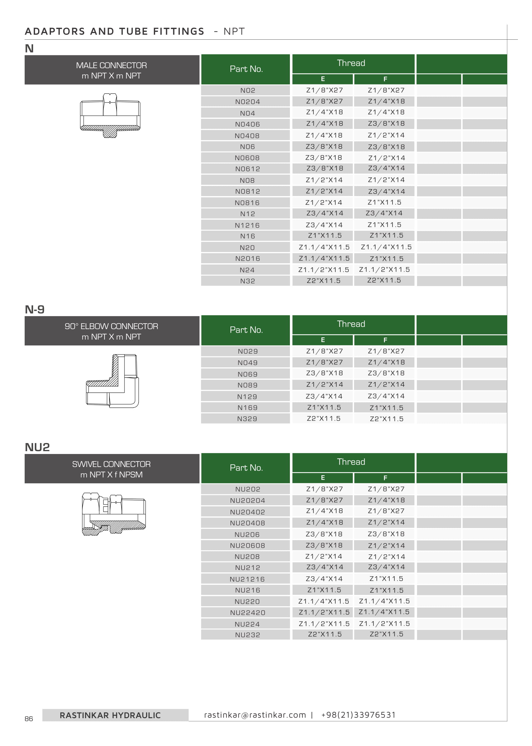 شرکت راستین کار بزرگترین وارد کننده و ارائه خدمات پس از فروش اتصالات مغزی از راسته محل بند NPT در خاورمیانه است. برای سفارش و دریافت مشاوره محصولات به ما ایمیل (rastinkar@rastinkar.com) بزنید. یا با دفتر تهران با شماره هاي ۰۲۱۳۳۹۹۱۸۵۲ ،۰۲۱۳۳۹۷۶۵۳۰، ۰۲۱۳۳۹۷۶۵۳۱ و تلگرام ۰۹۱۹۸۱۶۱۶۹۲ تماس حاصل فرمایید.