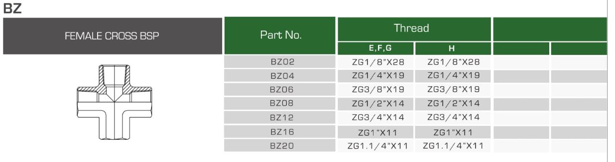 چهار راهی داخل دنده انگلیسی بر اساس استاندارد BSP طراحی شده است. در سایز هایی بین ۱/۸″ تا ۴″ موجود است. جنس بدنه آن بسته به نیاز مشتری قابل تهیه است ولی اصولا از فولاد (استیل کربنی) ساخته میشوند. این قطعه میتواند کاربردهای زیادی در سیستم های انتقال سیال داشته باشد مانند گرفتن انشعاب های مختلف از یک منبع و یا ترکیب چند خروجی مختلف که میتواند حاوی مواد متفاوتی باشد و در نهایت داشتن یک خروجی واحد.