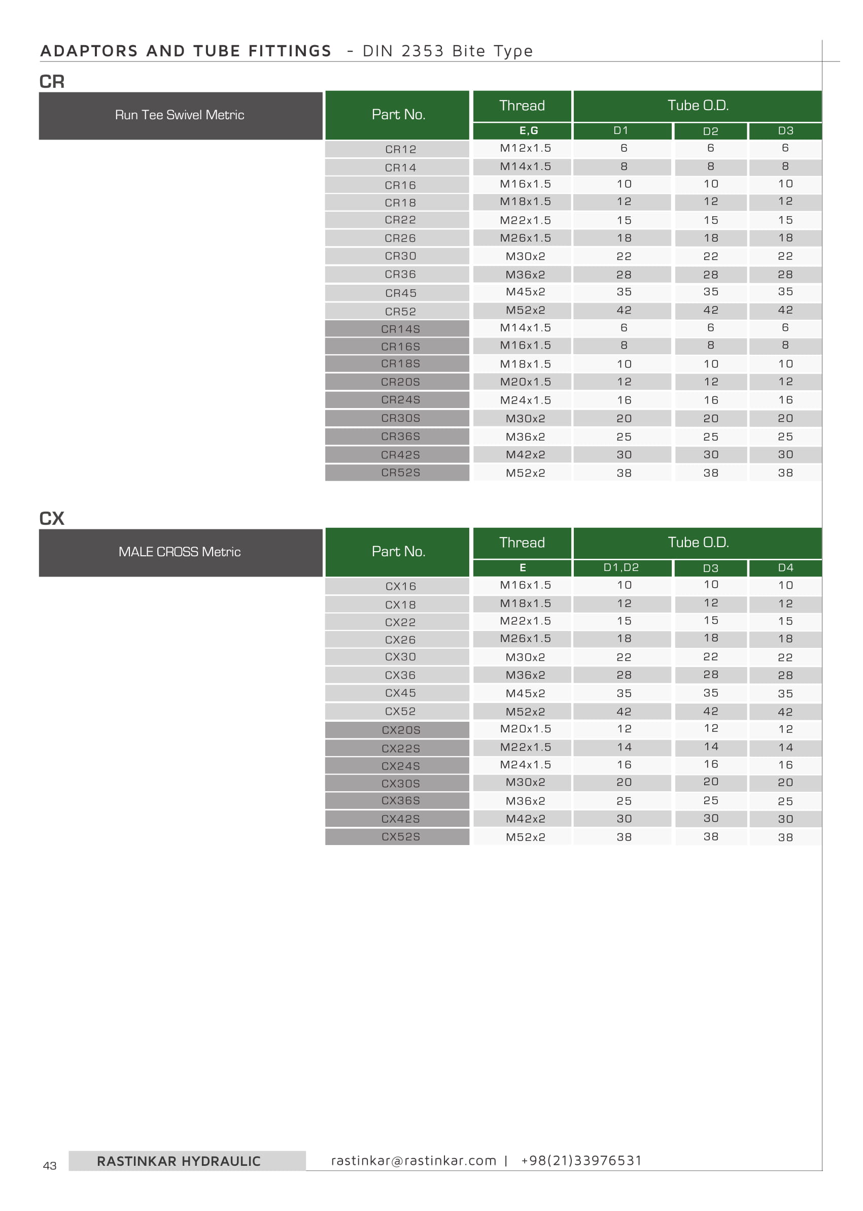 شرکت راستین کار بزرگترین وارد کننده و ارائه خدمات پس از فروش DIN اتصالات متريك از جمله چهار راهی DIN 2353 در خاورمیانه است. برای سفارش و دریافت مشاوره محصولات به ما ایمیل (rastinkar@rastinkar.com) بزنید. یا با دفتر تهران با شماره هاي ۰۲۱۳۳۹۹۱۸۵۲ ،۰۲۱۳۳۹۷۶۵۳۰، ۰۲۱۳۳۹۷۶۵۳۱ تماس حاصل فرمایید.