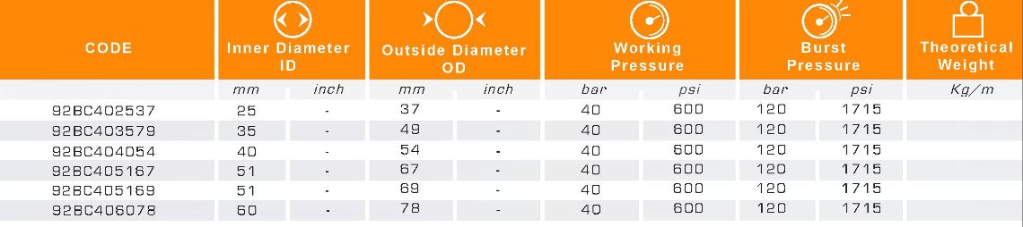 | (inch) قطر داخلی شیلنگ | 25mm – 60mm |