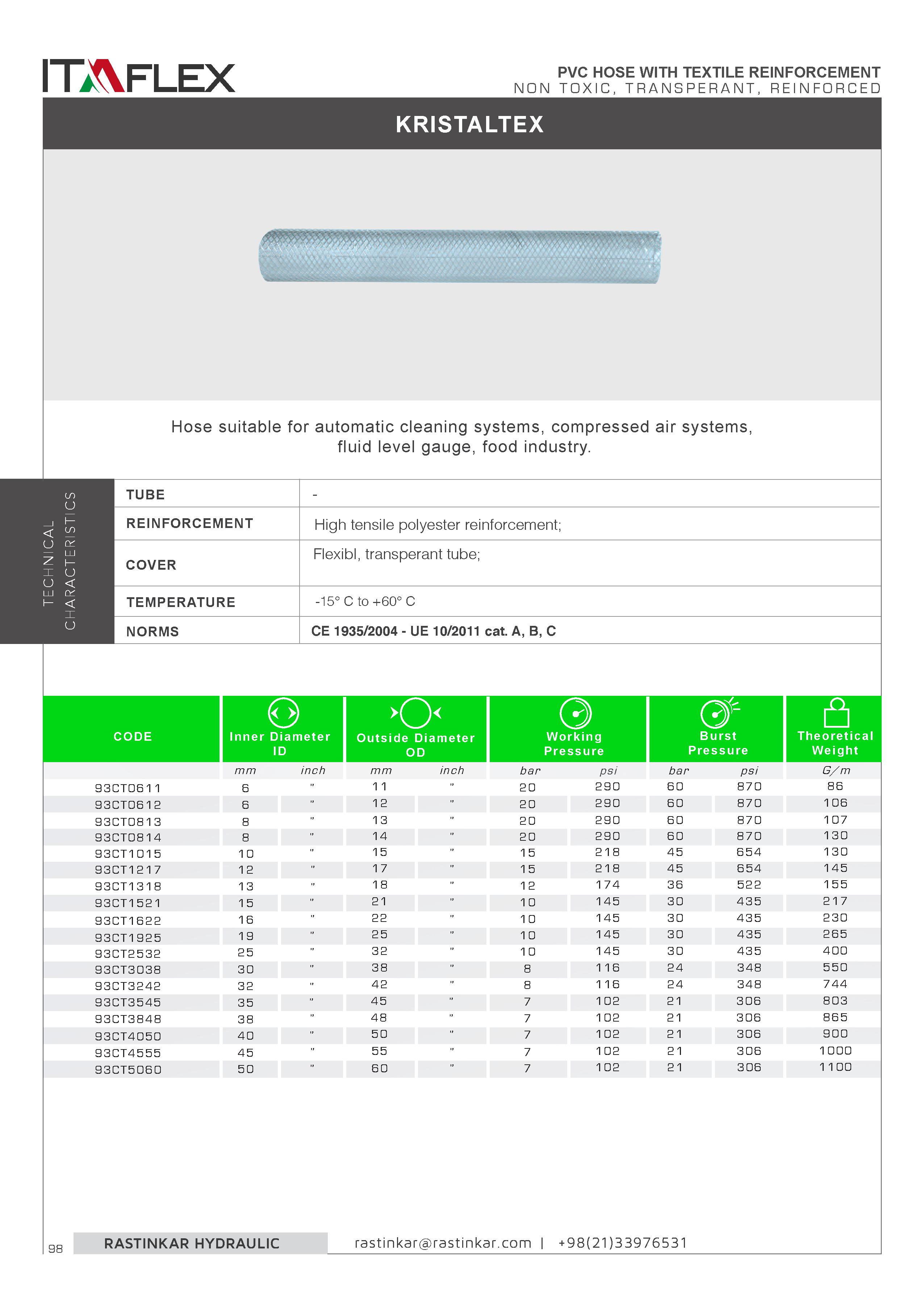 | (inch) قطر داخلی شیلنگ | 12 – 60 mm |