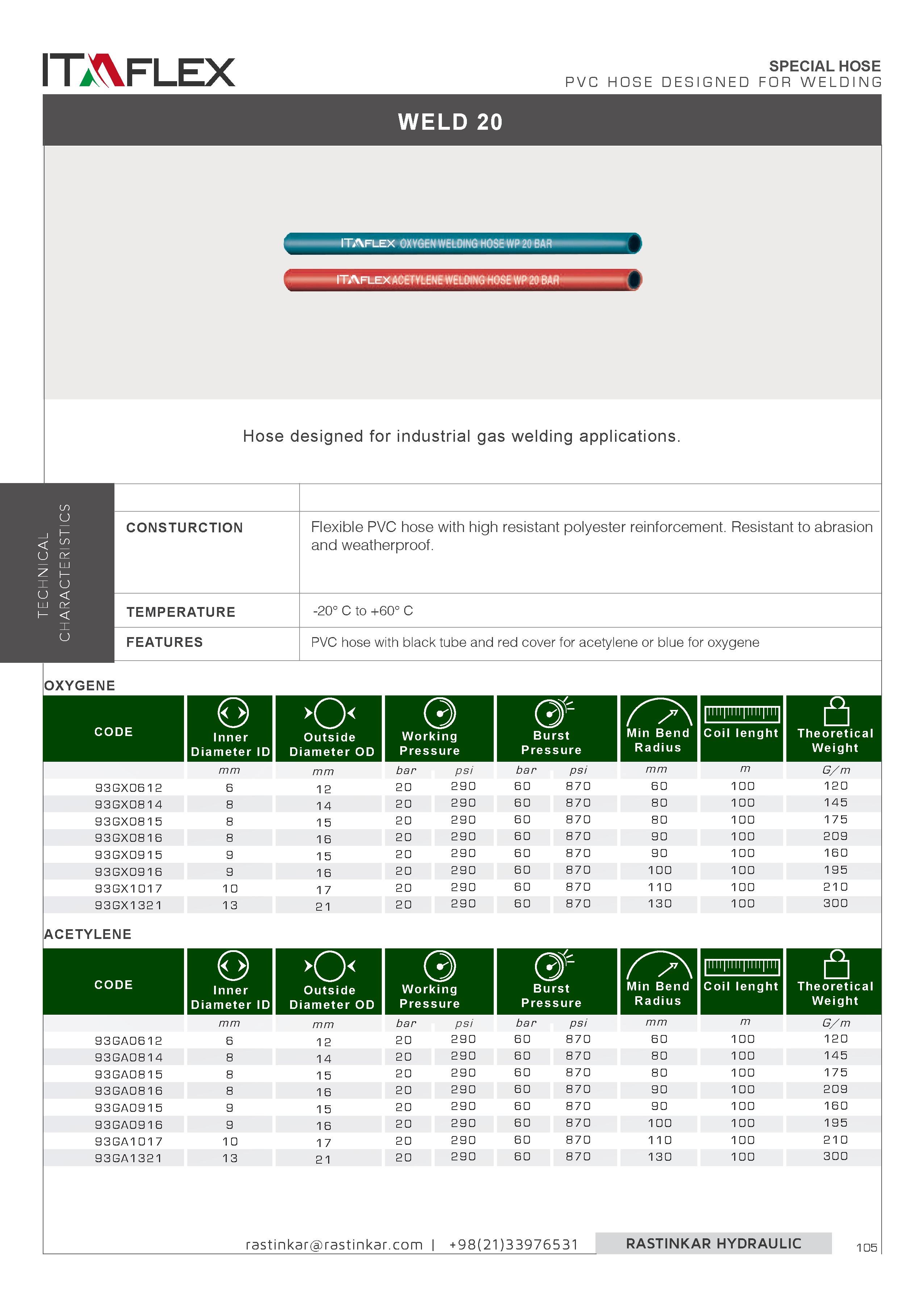 شرکت راستین کار بزرگترین وارد کننده و ارائه خدمات پس از فروش شیلنگ صنعتی P.V.C یا پلاستیک از جمله جوشکاری Weld 20 در خاورمیانه است، برای سفارش و دریافت مشاوره محصولات به ما ایمیل (rastinkar@rastinkar.com) بزنید یا با دفتر تهران با شماره هاي ۰۲۱۳۳۹۹۱۸۵۲ ،۰۲۱۳۳۹۷۶۵۳۰، ۰۲۱۳۳۹۷۶۵۳۱ تماس حاصل فرمایید .